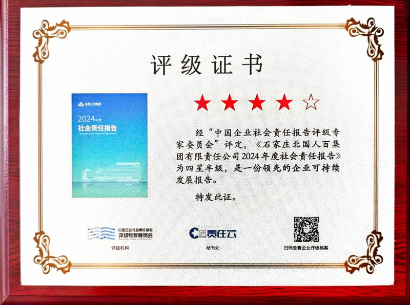 近日,經中國企業社會責任報告評級專家委員會嚴格評定,《北人集團2024年度社會責任報告》獲得“四星半級”評級。
