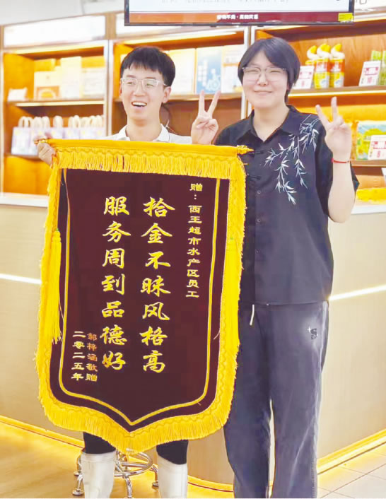 一天下午,北國超市西興店生鮮部員工張天龍打掃衛生清理地墊時發現了一個金色四葉草小鑰匙吊墜,撿起來之后,他判斷出吊墜是真金材質,心里不禁擔憂:失主發現吊墜丟失后得多著急啊。正當他準備向門店領導匯報的時候,店內廣播響起“哪位顧客朋友或員工朋友撿到了一個項鏈吊墜……”的尋物通知。張天龍立刻交接手頭的工作,快步趕往服務臺,經過與失主核實信息無誤后,他將吊墜歸還給了失主。