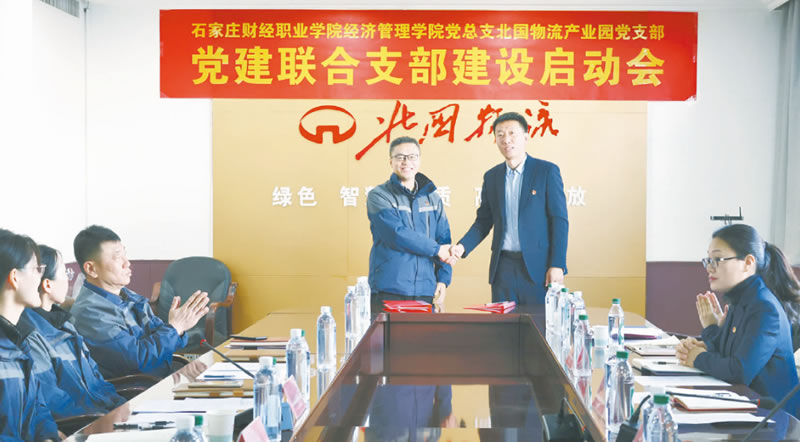 12月3日上午,北國(guó)物流產(chǎn)業(yè)園黨支部與石家莊財(cái)經(jīng)職業(yè)學(xué)院經(jīng)濟(jì)管理學(xué)院黨總支黨建聯(lián)合建設(shè)啟動(dòng)會(huì)在北國(guó)物流三樓會(huì)議室舉行。雙方將攜手探索黨建引領(lǐng)下校企合作的新模式、新路徑,共同推動(dòng)組織共建、資源共享、發(fā)展共促,為校企協(xié)同發(fā)展注入新的活力。石家莊財(cái)經(jīng)職業(yè)學(xué)院黨委書記薛向東、北國(guó)物流產(chǎn)業(yè)園黨支部書記、總經(jīng)理宋京巖及雙方黨員代表出席會(huì)議。